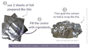 In the centre of your double layer of foil, this is where you’ll build your campfire nachos tower.