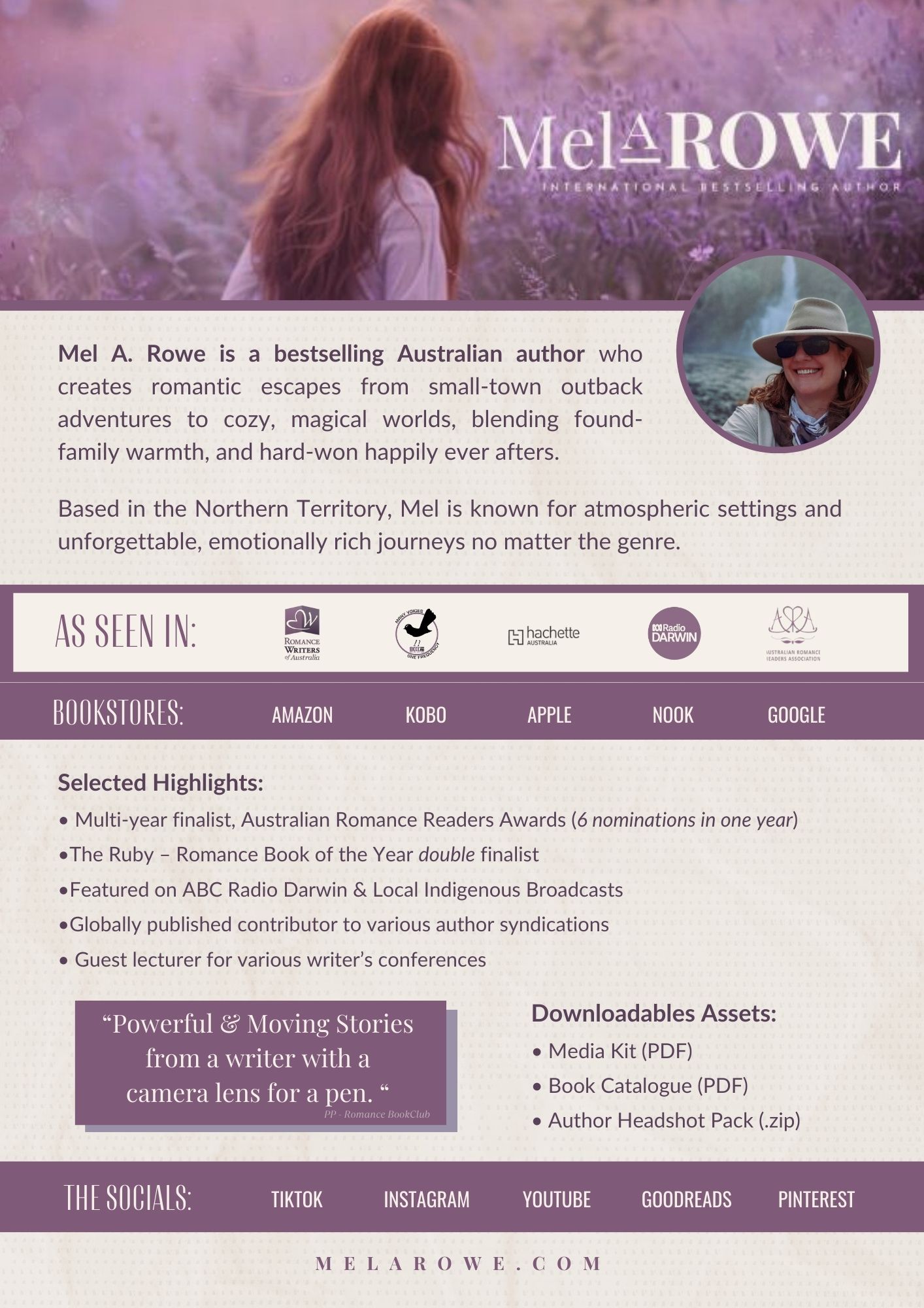 Mel A. Rowe is a bestselling Australian author who creates romantic escapes for readers who crave emotionally rich stories filled with heart, hope, and hard-won happily ever afters.